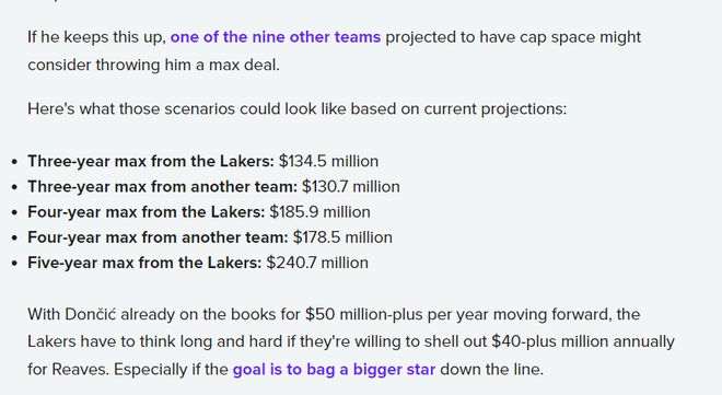 里夫斯今夏拒绝执行自己26-27赛季的球员选项,同时他拒绝了湖人四年8920万的提前续约,明夏里夫斯可以从湖人拿到三年1.345亿、四年1.859亿、五年2.407亿,如果签约其他球队三年1.307亿、四年1.785亿。如果湖人觉得给里夫斯4000-5000万太贵,本赛季他们可以找哪些交易伙伴呢?